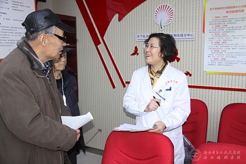 内科义诊团队来到大明湖街道党群服务中心,医院内科主任刘建珍作了题为《高血压冬季防治》的健康讲座。