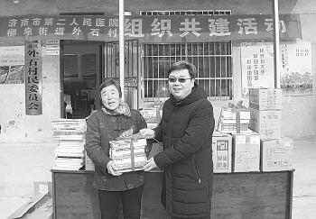 为全面助力柳埠镇外石村党支部文化大院建设项目,当天上午,济南市二院与柳埠街道外石村组织共建活动——捐书仪式在村委会大院进行,牟鑫代表医院为村民送上了职工们捐赠的近700册图书,内容涵盖历史、育儿、心理、医学、文学等十余种门类,种类繁多,内容丰富。(记者 王丽 通讯员 于娜 本文刊登于2018年12月13日《生活日报》第16版)
