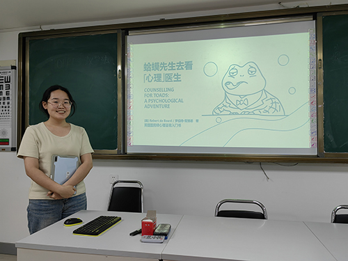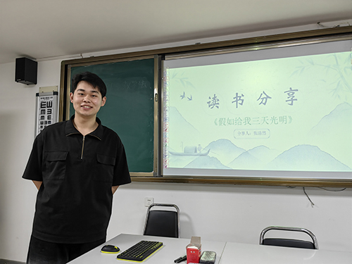 随后,楮雨婷等几位同学也以饱满的热情分享了《平凡的世界》、《人生海海》、《主角》、《蛤蟆先生去看心理医生》等文学作品,从他们自身的读书感悟出发,把自己的理解与心得分享给了在场的每位师生。