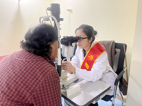白内障专业副主任医师栗映梅、眼底病专业主治医师龚斌带领医护人员运用专业设备,耐心细致地为居民们进行了视力检查、眼表检查、眼底检查等一系列眼科常规检查。
