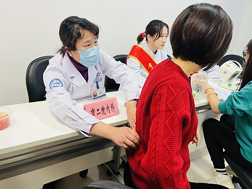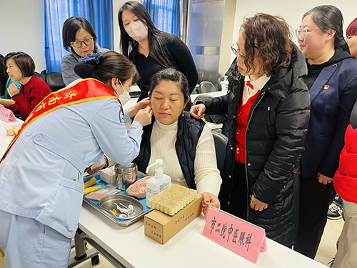 志愿者为职工进行耳穴压豆