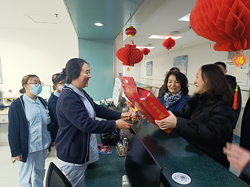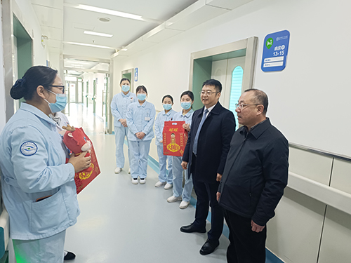 督导组一行深入医院一线科室,就医疗救治、安全生产等工作进行了现场督导,详细询问了节日值班、医疗服务、后勤保障等情况,为坚守一线的医务人员送上了新春的问候和节日的祝福。