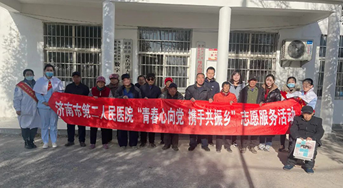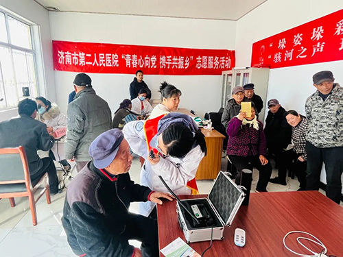 走进济阳区垛石街道大赵村和刘道口村开展“青春心向党 携手共振乡”志愿服务义诊活动。此次活动医院派出了眼肌病专业、眼外伤专业、内科及护理团队,共计服务群众300余人次,发放健康宣传资料100余份,为群众提供了面对面、零距离的医疗服务,得到当地村民的热烈欢迎。