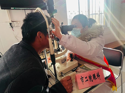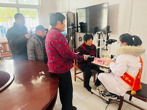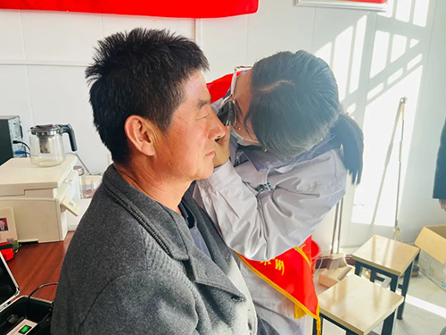 “你们这个活动太及时了,我家老头子刚在济南住院回来,想着躲过这两天降温再回去复查呢,你们就把医生送来家门口了,天气温度是降了,心里可太暖和了!”村民徐阿姨高兴地说。义诊现场,市二院志愿者们详细询问村民们的身体状况,耐心分析病情,用通俗易懂的语言讲解注意事项,认真解答群众关于常见病、多发病的预防诊治问题,并给出具体治疗方案和用药建议。医护人员为村民测量血压、检查视力、裂隙灯检查、眼底镜检查等,同时派发健康宣传册向村民传播正确的健康理念、普及科学的健康知识,进一步发挥医院专业优势,引导村民养成健康科学的生活方式。