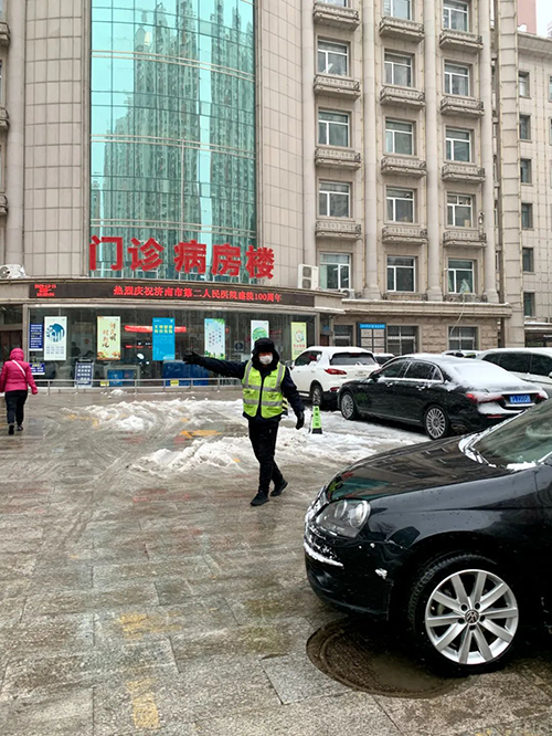 安保科人员指挥调度好车辆的停放,保持院内应急通道畅通。