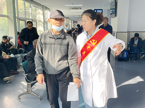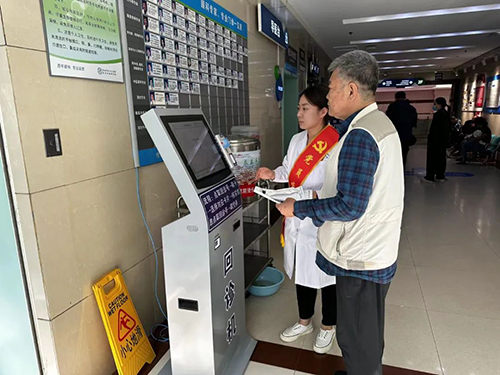 当天一早,党员志愿者们身着绶带,为前来就诊老年人送上一杯杯热饮,并协助导医开展秩序维护、办卡充值、指导就医、答疑释惑、就诊引导、科普宣教等工作。志愿者们以热情、耐心的服务得到了广大患者的好评。
