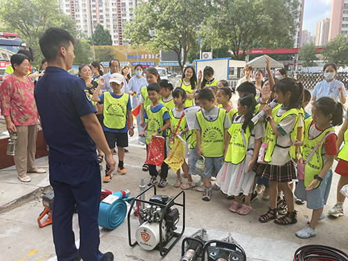 团委联合济南市消防救援市中大队、济南市槐荫区五里沟街道发祥巷社区开展“大手牵小手”暑期社会实践活动。