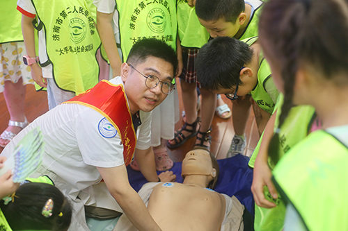 针对中小学生特点,在如何预防溺水事故、如何正确自救、如何有效开展救援等进行教学,并针对心肺复苏、海姆立克急救法的具体操作进行现场演练,多名学生代表在医生的指导下完成了标准的心肺复苏急救动作。王立新表示:“即使是对急救最简单的了解,在意外来临时也有可能会挽救回一条生命,所以对大家的认真学习表示感谢。”