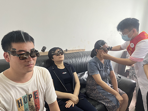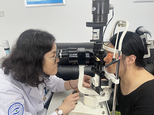 市二院中医眼科副主任医师宿艳用裂隙灯为职工检查眼睛