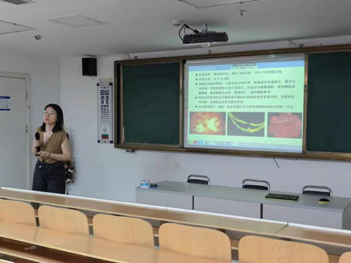 论坛上,眼五科副主任医师李倩分享了在后巩膜加固术方面的研究成果和实践经验。她从原理、作用机制、发展历程、适应症、禁忌症、并发症,临床效果观察、不同术式优缺点等多个方面对后巩膜加固术进行了详细介绍,对该手术创伤小、减缓高度近视眼轴效果明显、并发症少等特征进行了深入讲解。