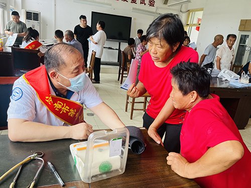 走进商河县杨八士村开展“青春心向党 携手共振乡”志愿服务义诊活动。此次活动派出了眼科、内科、中医科专业团队,共计服务群众近100人次,发放健康宣传资料100余份,为群众提供了面对面、零距离的医疗服务,得到当地村民的热烈欢迎。