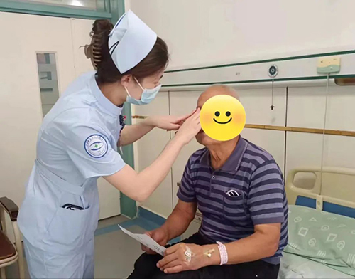 在住院期间耐心指导患者正确的按摩方法,使患者在焦虑中得到安抚和帮助。很多患者表示,出院回家之后,按照病房护士教授的方法坚持做眼球按摩,眼压控制得很理想,对眼三科表示感谢!