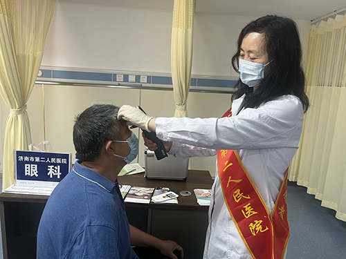在讲座结束后,“护瞳行动”志愿服务团队为居民们进行了全方位的眼病筛查,如包括视力检查、眼底检查、眼表检查、眼压测量等,并为筛查出眼病的居民提供了专业的治疗方案,建议他们到正规医院接受进一步的检查和治疗。除眼病筛查外,中医眼科副主任、副主任医师宿艳还为居民们送上了中医眼科核桃灸以及耳穴压豆的体验服务。医护人员详细讲解了核桃灸和耳穴压豆的适应症及功效,现场居民朋友踊跃参与了体检治疗。
