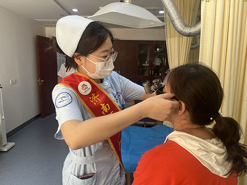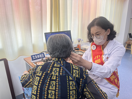 中医眼科副主任宿艳为社区居民进行耳穴压豆