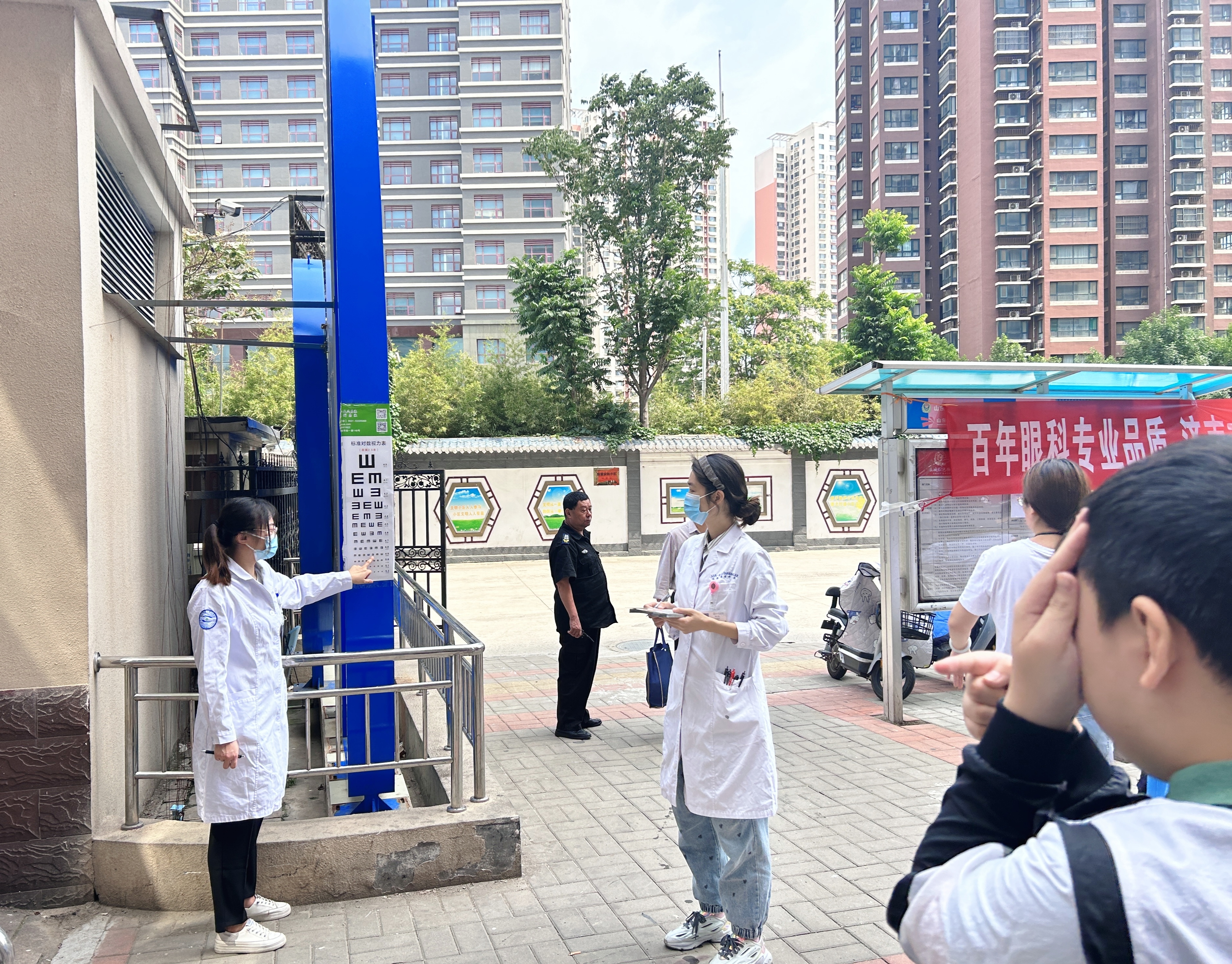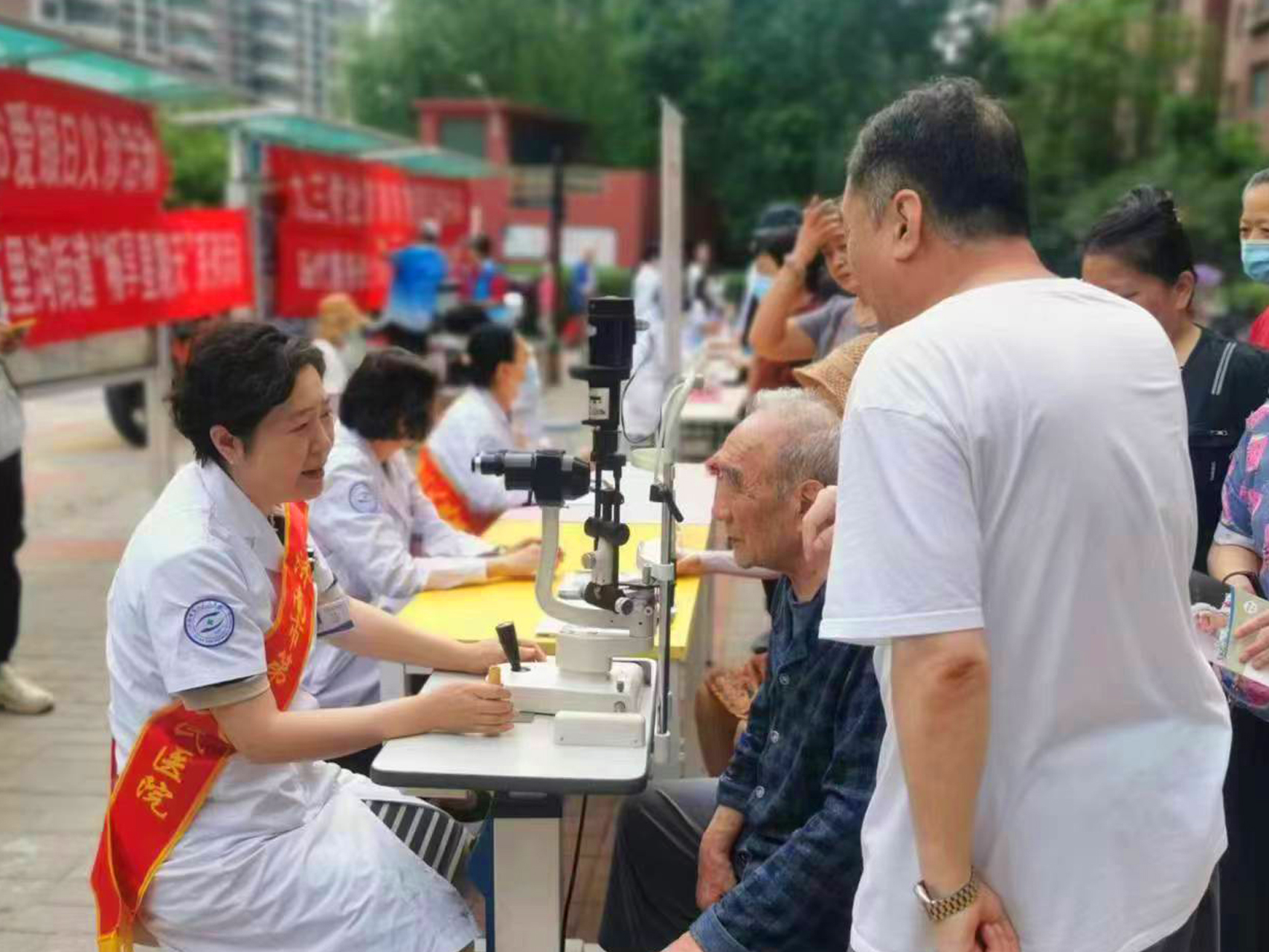 志愿者为居民测视力
