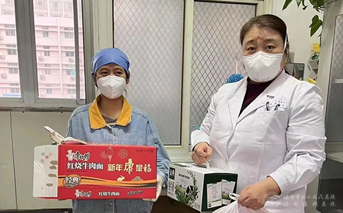据悉,该批捐赠物资由市医务工会筹集,含方便面、牛奶、火腿肠、饼干等食品,市二院工会将该批物资发放至发热门诊、阳性门诊、预检分诊、阳性病房、PCR实验室等防控一线部门,保障职工繁忙工作的间隙能够及时补充体力。