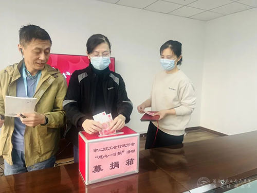 院领导率先垂范,带头参与,全体职工积极响应、踊跃捐款,纷纷献出爱心。据统计,市二院共募得善款45000余元。