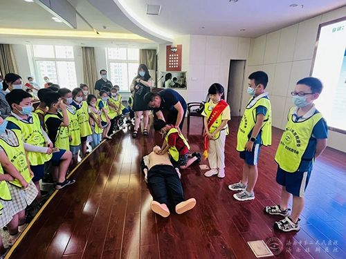 针对中小学生特点,在如何预防溺水事故、如何正确自救、如何有效开展救援等进行教学,并针对心肺复苏、海姆立克急救法的具体操作进行现场演练,多名学生代表在医生的指导下完成了标准的心肺复苏急救动作。