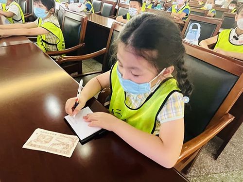 财商讲座结束后,工作人员为每位参加活动的学生们发放一定量的训练用点钞币进行点钞体验,学生们一边紧盯手中的纸币一边快速地点动,那认真劲儿像极了专业的银行工作人员。