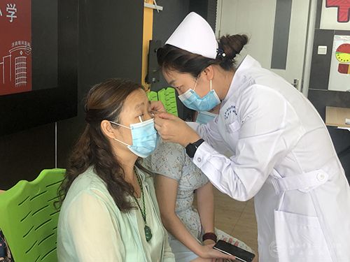 在9月10日教师节当天,“护瞳行动”眼科专业团队为南上山街小学的老师们作了以干眼防控为主题的知识讲座,向他们送上了一份特殊的节日礼物。市二院眼表疾病科护士长李淳讲解了干眼症的症状及致病因素,并现场传授了干眼症的防治知识,帮助老师们提前了解和掌握干眼症的预防知识。讲座过后,志愿者门利用便携式干眼治疗仪等专业设备为老师们提供了眼部雾化熏蒸、泪液测试、眼部冷敷贴冷敷等义诊服务。老师们欣喜地表示,眼部的干涩症状得到了缓解,眼睛感觉清凉舒适。