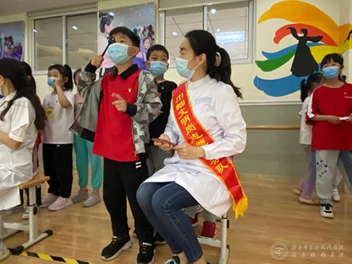 医院医务人员为孩子们纠正姿势