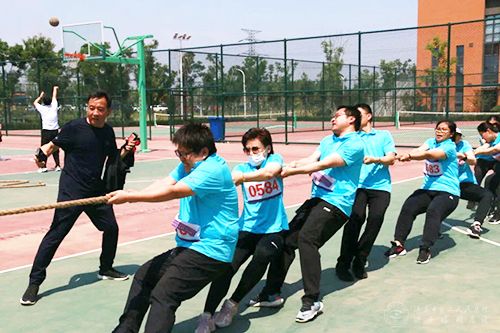 副院长曹传洲为参加拔河的队员加油鼓劲
