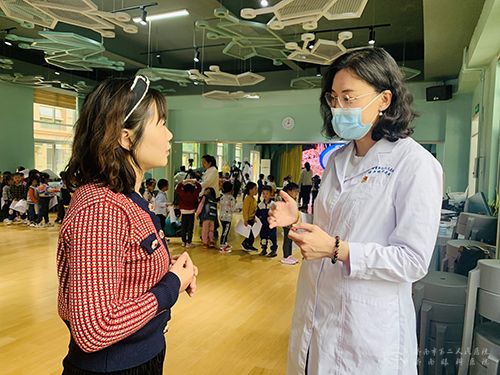 西江华府第一幼儿园对本次“护瞳行动”给予了高度重视和大力支持,前期院团委与校方多次沟通,班级负责老师提前教会小朋友们如何认识视力表,保证每个孩子视力检查结果的准确性。课堂上,市二院团员先锋岗中医眼科副主任医师宿艳利用课件向孩子们生动地讲解了近视成因、主要危害以及预防方法,引导他们树立爱眼护眼的意识,逐步养成良好的用眼卫生习惯。随后,宿主任从中医眼科学的角度向园内班主任简单介绍了眼保健操改善视疲劳和预防近视眼的基本原理,并讲解了每节眼保健操的穴位位置及按揉手法。在视力筛查环节,志愿者们为130余名适龄儿童进行了视力筛查,建立起了视觉健康档案。对疑似近视的小朋友进行了第二轮验光复查,并向保健老师进行了专门反馈。义诊活动受到学校老师和学生家长的热烈欢迎和一致好评。
