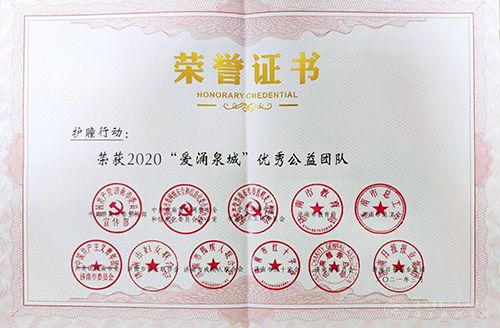 “护瞳行动”被授予2020“爱涌泉城”优秀公益团队。