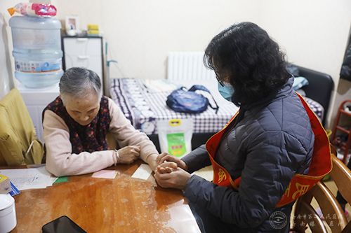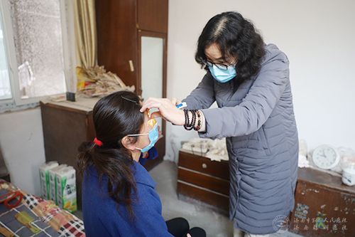 焦大姐是发祥巷小区的另一户困难家庭,夫妻二人依靠打工维持家庭生活,儿子现就读高职,前不久老父亲刚刚去世,一家人照顾着视力一级残疾的老母亲。看着志愿者们上门看望慰问,焦大姐动情地说:“昨天一听说眼科医院的志愿者要来看望我们,我们家老太太高兴地不得了。”