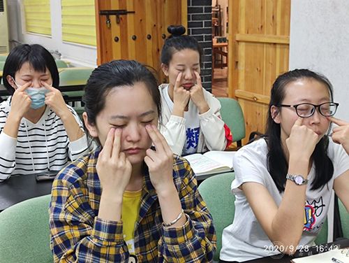 宿主任还从中医眼科专业的角度出发,阐述了做眼保健操用于改善视疲劳、预防近视发生的作用机制,并借助课件讲解了眼保健操的穴位位置及按揉手法。帮助老师们更好地指导学生们做眼保健操,从而保障眼保健操发挥出应有的护眼功效。