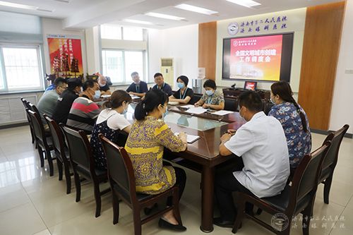 召开全国文明城市创建工作调度会,市二院党委书记吕丽萍、副院长王俊峰、纪委书记李洁月出席,相关科室负责人参会。