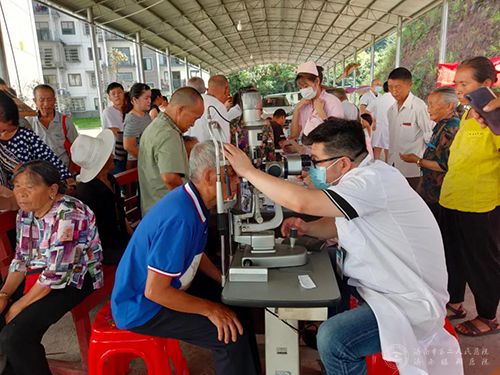 7月4日,古丈县岩头寨镇中心卫生院进行“关心百姓健康”义诊活动。岩头寨镇是古丈县一个较为偏僻的乡镇,道路崎岖,医疗服务水平相对较低。历经两个小时的车程,义诊专家组在上午9时到达古丈县岩头寨镇卫生院。村民们早已排着长队,等待候诊。天气闷热,专家们汗水湿透了衣衫,忙到下午1时许还顾不上吃饭。此次义诊张主任共为100余名村民进行了眼科检查,并预约了30名白内障患者免费进行白内障手术。