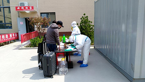 疫情发生后,王立新第一时间递交了奔赴一线的请战书。虽然没有战斗在武汉的战场上,他却义无反顾冲在了机场前线,成为守护国门的战士。根据工作安排,机场医疗保障组实行24小时轮班制度,随时安置需要隔离的人员。第一天开始接收留观人员时,正值降温,交接地点都在室外,温度只有3℃,王立新带领队员们坚守在工作岗位,对留观人员进行测温、消毒、信息核查登记、办理入驻,等到最后一名人员办完留观手续已是凌晨四点。他们还需要承担所有留观人员的资料统计工作、酒店工作人员消毒隔离相关知识的培训以及穿脱防护服流程的培训工作。特殊时期,酒店安排的服务员人数较少,他们还临时管理起杂务,比如充当服务员给留观人员分餐,充当翻译做酒店前台和留观人员的传话筒,充当心理医生为有关人员进行心理疏导。