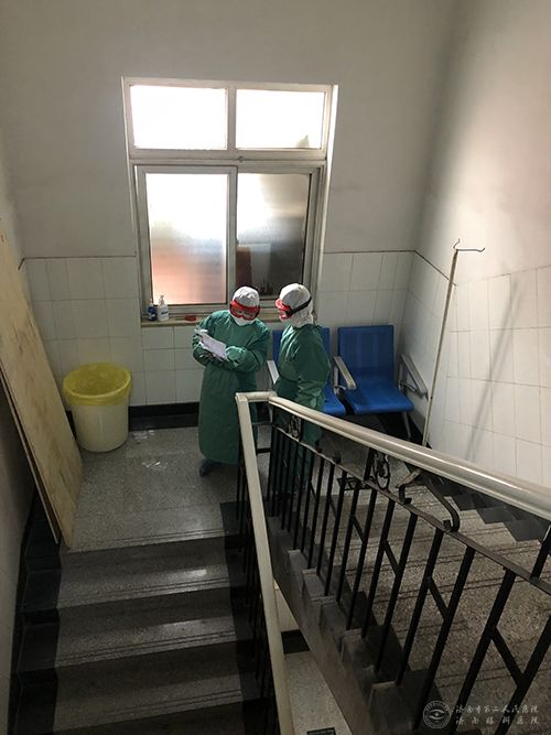 在疫情爆发初期,面对口罩、酒精、速干手消毒剂等医疗物资紧缺的现状,大家发挥集体智慧,通过减半分装、定量补给等方式,既节约了耗材用量,又保证了一线临床科室的基本供应。为节省防护用品,让每件珍贵的防护品都用在了刀刃上。大家尽量少喝或不喝水,避免如厕,因此出现了不同程度的嗓子痛、牙痛。他们冒着被感染的风险,迎着寒风一直坚持值守,一站就是八九个小时,尤其是在为加强门诊通风,大厅棉门帘拆除后,日子就更加难过,棉衣棉靴暖宝宝,成了标配。一碗热腾腾的粥或面就成了大家最好的午餐。