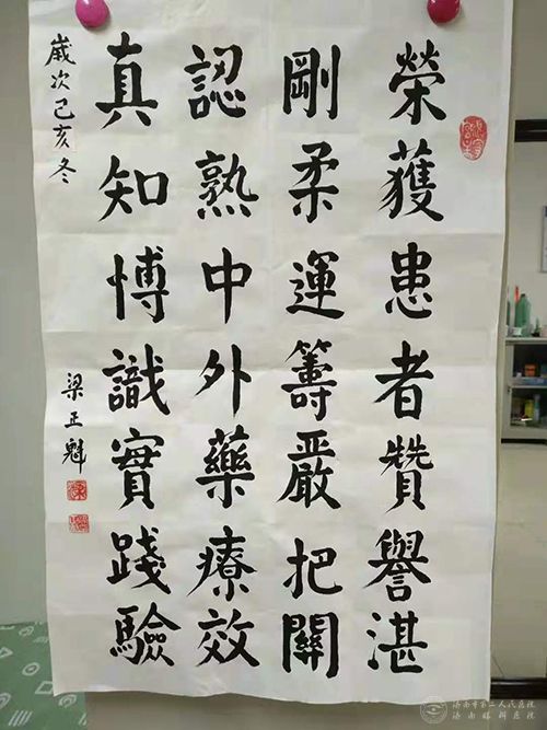 渐渐地,梁大爷打电话的语气开始不那么急躁了,来窗口取药也平心静气了很多。梁大爷服用的药物有十余种,哪种药需要早上吃,哪种药必须空腹吃,哪个症状可能是某个药物的副作用等,情况比较复杂。作为“临床药师”的朱荣刚又利用他所掌握的药学专业知识,给他一一解释,去除心中疑惑。服用的药物减少了,效果比以前好了,梁大爷越来越信任朱荣刚,花了大心思写下了这首“藏头诗”,送给他。
