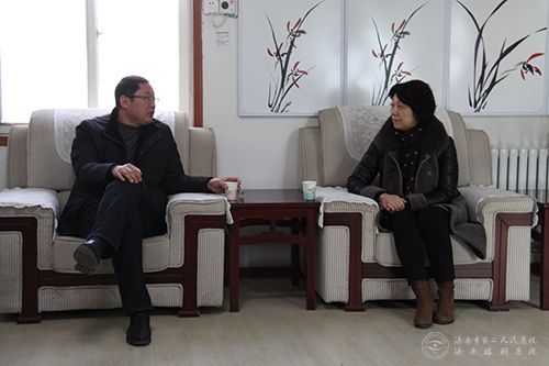 1月3日,济南市二院党委书记吕丽萍、副院长王俊峰、曹传洲等一行,赴济阳区新市镇看望挂职党建办副主任姚辉同志。新市镇党委副书记、镇长付丰亮,党委副书记王勇及新市镇挂职党委副书记卞鹏参加会议。