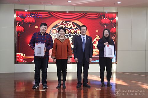 此次联欢会还穿插了抽奖环节和游戏互动,院领导登场开奖,为大家送去幸运和祝福,互动游戏让爱好运动的职工挥洒汗水,更为观众们贡献了“笑料”。联欢会在合唱《明天会更好》中圆满落下帷幕,会场上领导、演员、观众齐声合唱,为医院美好的明天献上真诚的祝福。(工会 郭兆瑞)