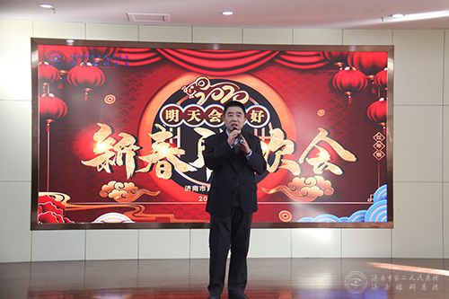 市二院党委书记吕丽萍在致辞中向全院干部职工、临床学院学生及社会各界表达了节日的慰问,并简要回顾了2019年医院取得的成绩,提出了2020年的四项重点任务。她号召全体职工同心同德,携手同行,共同谱写事业奋进的华彩乐章,共同奏响跨越百年的时代强音,共同期待医院明年会更好。
