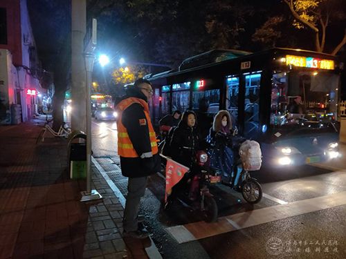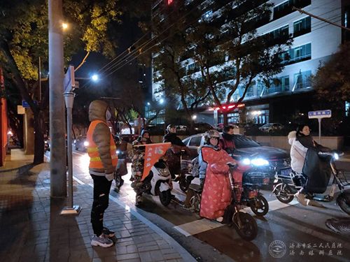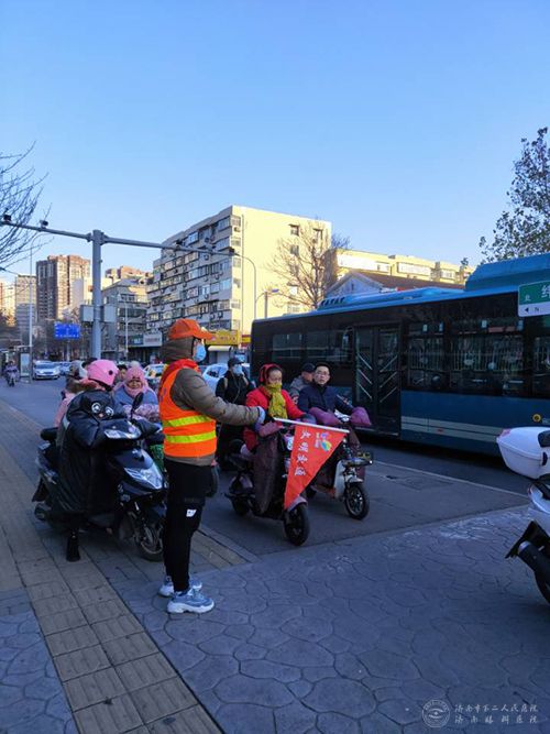 此时济南的温度已经是零下,志愿者们积极服从交警指挥、热情友善服务,展示了医院志愿者的良好精神面貌。通过举落小红旗,志愿者们为过往行人做指引,保证人、车都能安全通过马路,为广大市民营造一个平安出行的环境。