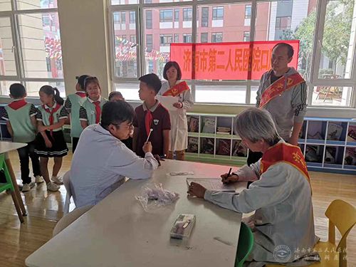 市二院口腔科工作人员及志愿者进行口腔保健知识的宣教,并进行口腔检查,对符合窝沟封闭条件约100余人,进行了预约就诊并给予费用优惠,对贫困人口等群体给予费用减免。