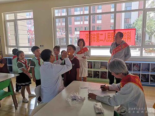 健康促进志愿者服务队开展以“健康每一天 从爱牙开始”为主题的义诊活动,来到槐荫实验小学进行口腔保健知识的宣教,并进行口腔检查,对符合窝沟封闭条件约100余人,进行了预约就诊并给予费用优惠,对贫困人口等群体给予费用减免。