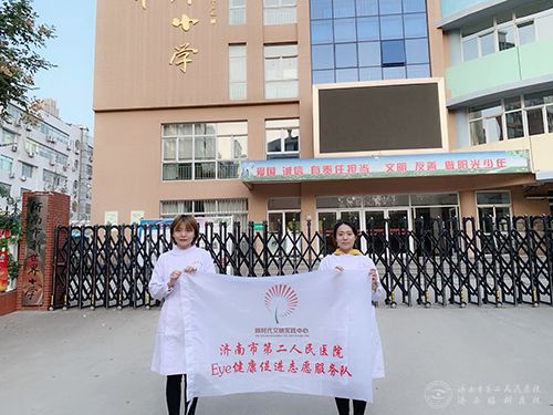 2019年10月9日,济南市二院“南丁格尔志愿服务队”的志愿者来到济南市槐荫区新世界小学,开展“爱眼小课堂”活动。