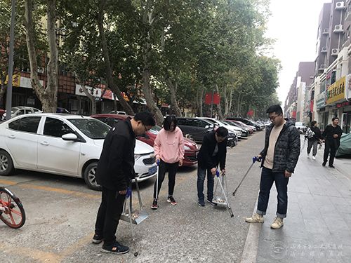 志愿者清理街道烟头