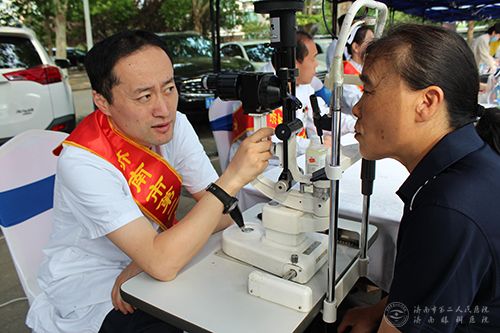 活动现场,市二院眼科专家耐心解答社区居民有关眼病预防及治疗的问题,利用裂隙灯等眼科检查设备,为居民们提供眼科专业检查。内科专家细心解答群众咨询,并提供相应的健康指导。护理人员为前来咨询的居民测量血压,发放眼科科普宣传册、视力表等。整个义诊过程,现场气氛十分活跃,专家们没有丝毫的休息时间,一直忙碌在各自的询诊、检查中。