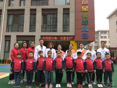 的青年志愿者们来到位于槐荫区龙腾国际花园的龙腾星光幼儿园,开展了“近视早防控”公益项目。
