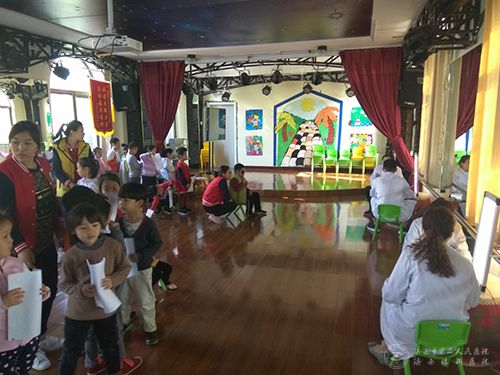 小朋友们排队等待视力检查