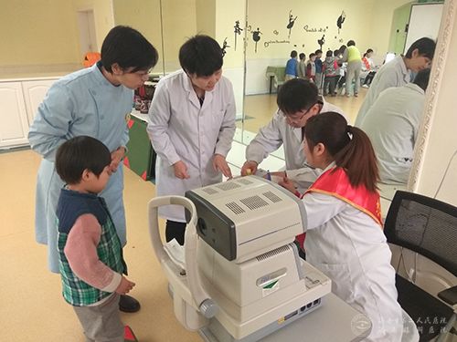 志愿者为孩子们进行验光检查