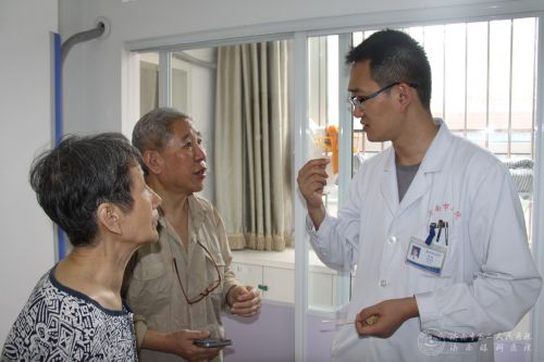 在老人住所,市二院眼科专家为卧病在床的老人进行了细致地检查,确诊老人为结膜炎。专家现场为老人进行了初步治疗,并将药品交到老人家属手中。同时,详细叮嘱老人家属及护理人员日常用药及护理注意事项。老人家属对医疗队一行表示感谢。