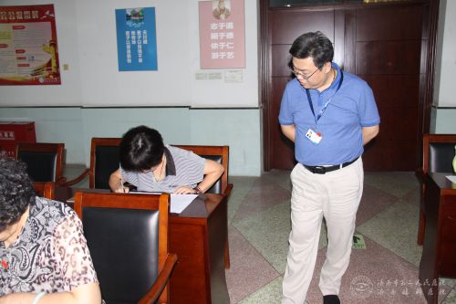 在七楼会议室组织全院党员干部和党外中层干部120余人进行党纪法规和德廉知识测试。市二院党委书记牟鑫、纪委书记、副院长程晓麟到场监考。