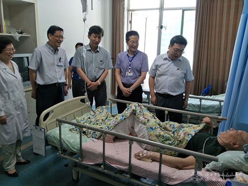 院领导看望住院的老党员,92岁的赵云杰老人